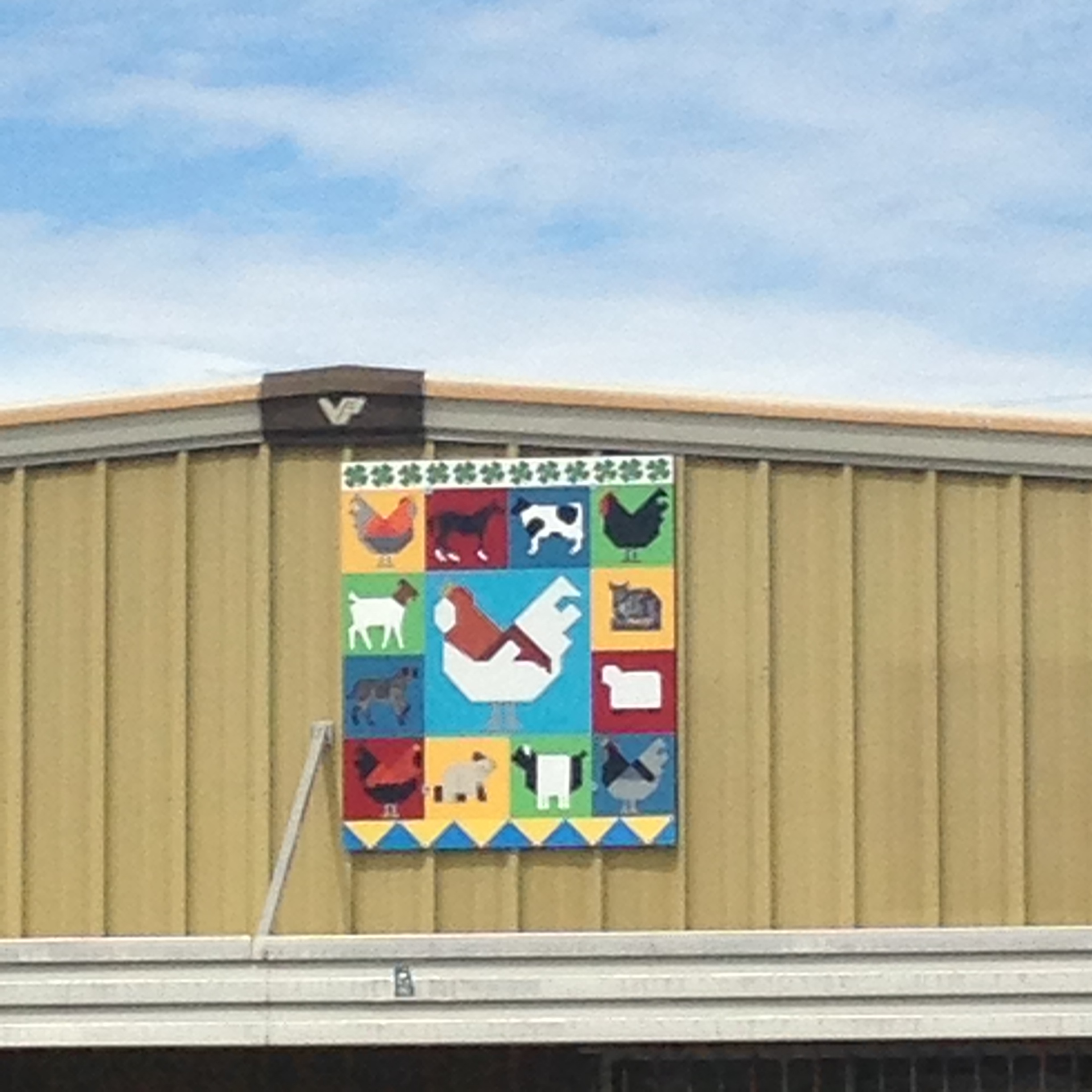 The Rio Linda Chicken quilt block represents Rio Linda’s history as a major egg and poultry producer, and the wide variety of local chicken breeds and colors.