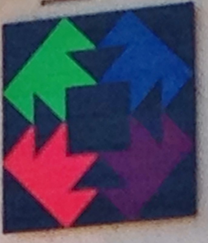 Inspired by quilt blocks along the Lake County Quilt Trail, Ken Tomlison went a step further with a 70s’ style blacklight poster, complete with fluorescent neon paint. Anna Marie and Ken chose Captital T to represent the four Tomlinsons, each in their own favorite color.